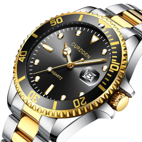 Gold Military Stainless Steel Date Sport Quartz Analog